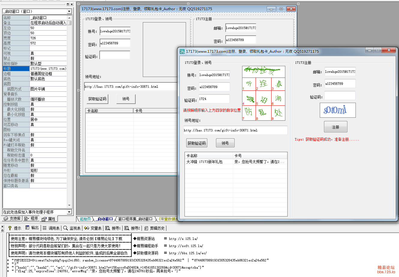 17173游戏网注册、登录、领取礼包码源码