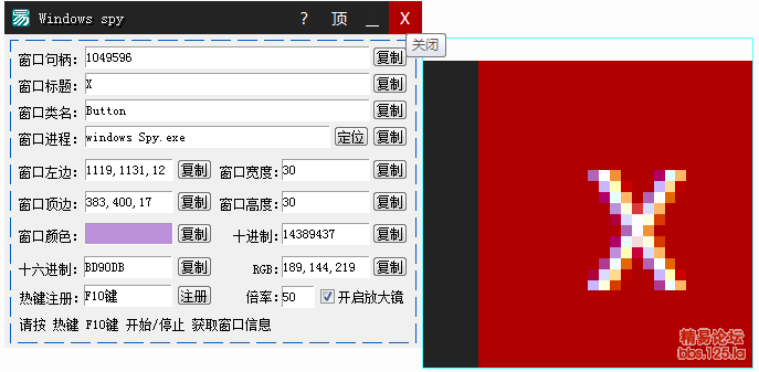 1.和大多数窗口信息查看功能一样,加入了取颜色功能,分别列出了十进制、十六进制、RGB等颜色值