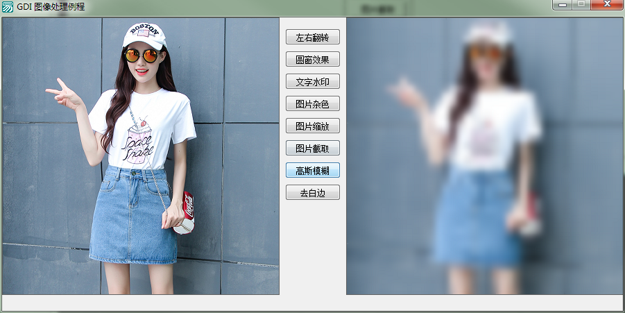 包含高斯模糊、图像缩放、图像截取、文字水印、去白边