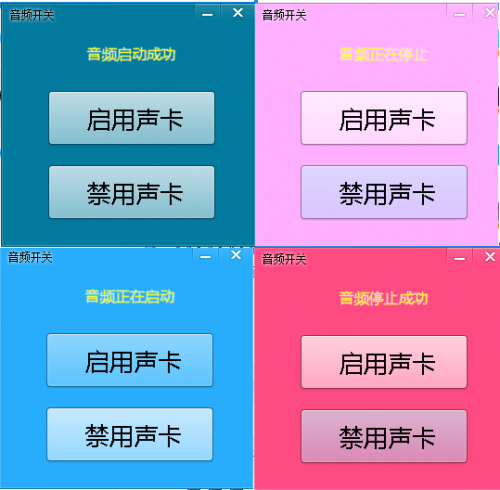 通过创建cmd管道,来开关音频服务,并监视cmd回显,来判断操作结果并显示.