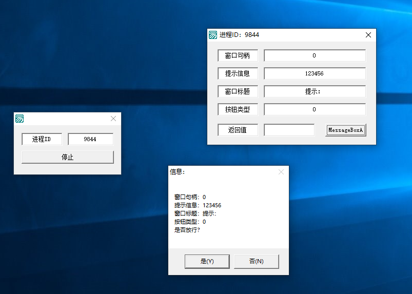 源码刚写好的 就测试了远程HOOK MessageBoxA 有BUG或不足的地方可站内消息给我