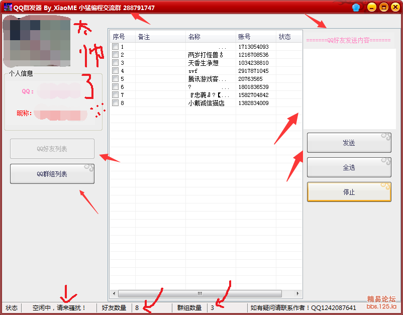 网页版QQ群fa器,一键通知所有好友群组,可自行增加检测消息