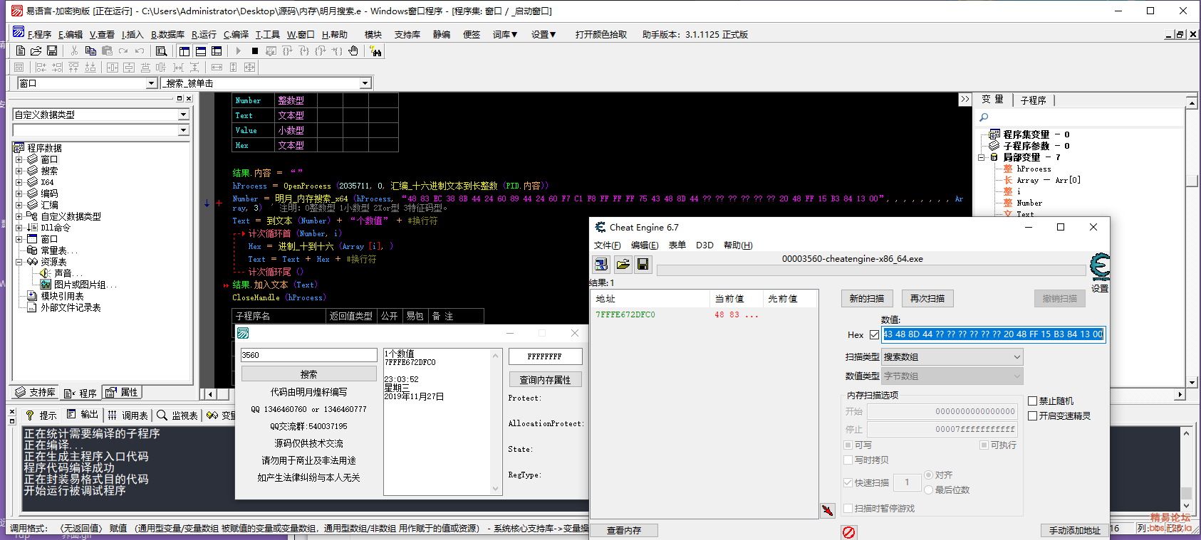 支持32/64内存搜索 汇编(支持通配符/整数/小数/Xor[两数之间]/单or多 搜索)