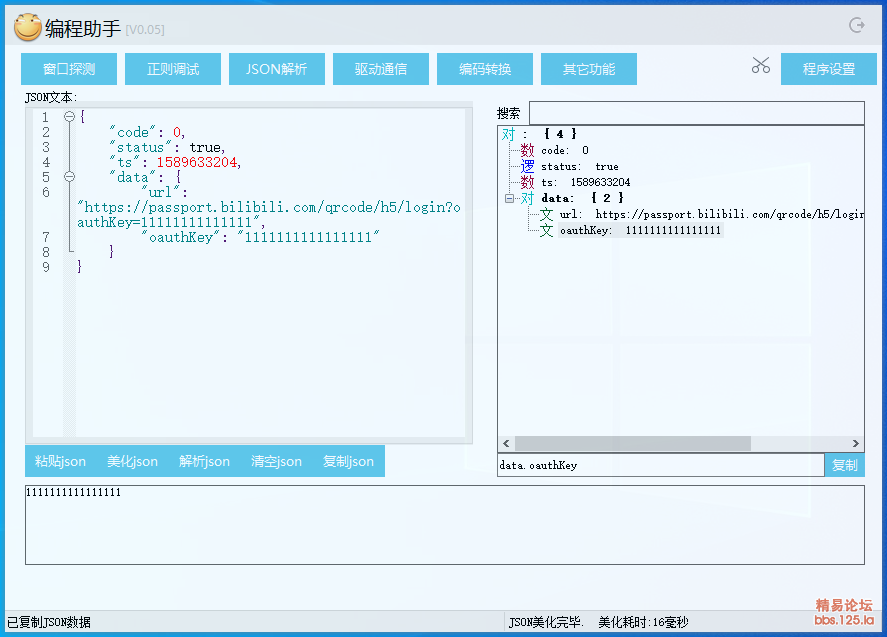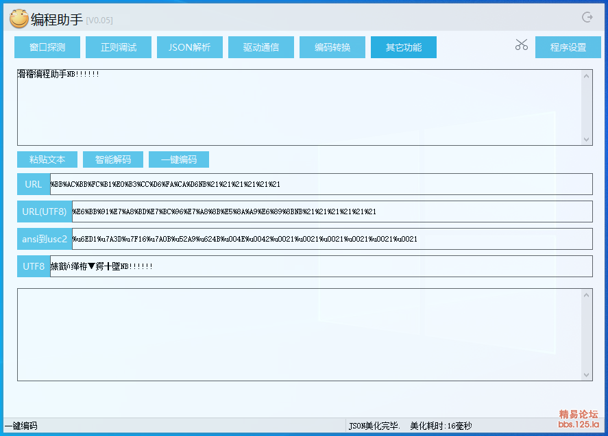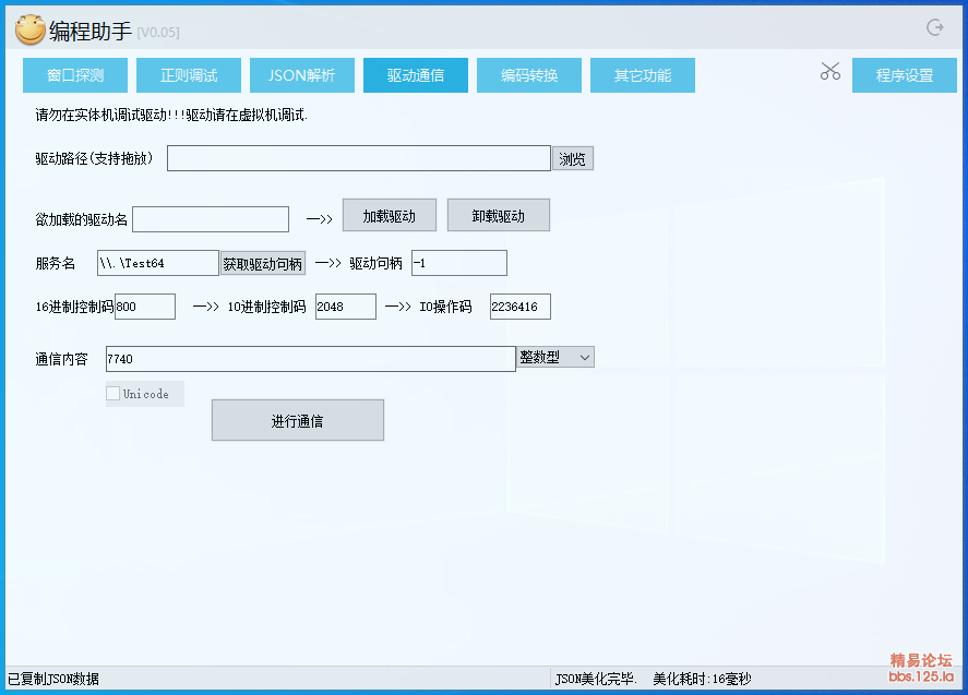 目前支持: 窗口探测 , 正则调试 , json解析 , 驱动加载 , 编码转换