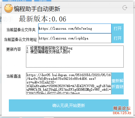 自动更新功能 , 目前使用微云笔记+蓝奏云取直链实现 .