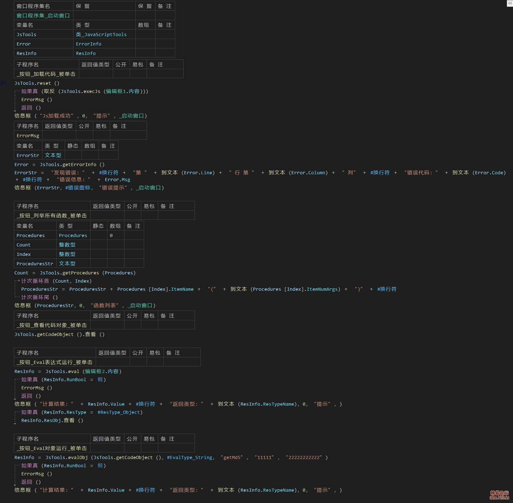 6.evalObj 通过代码对象执行函数,详情参照 <JavsScriptTools演示.e> 中的源码