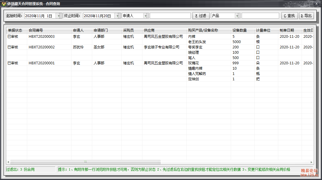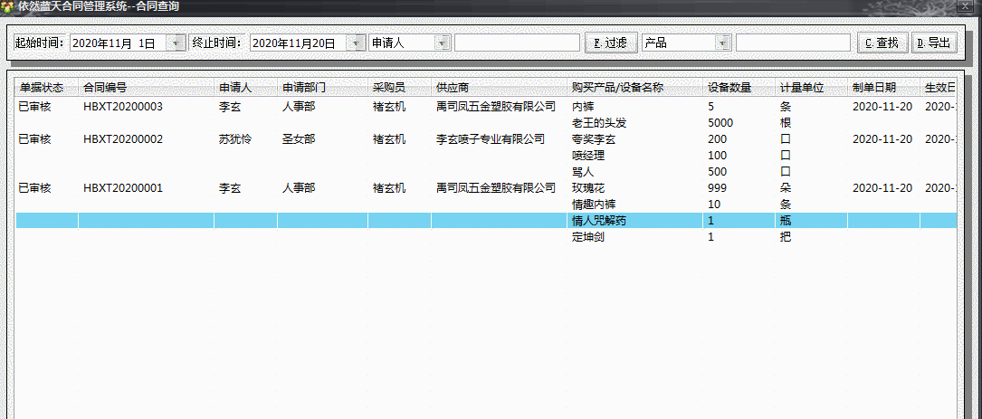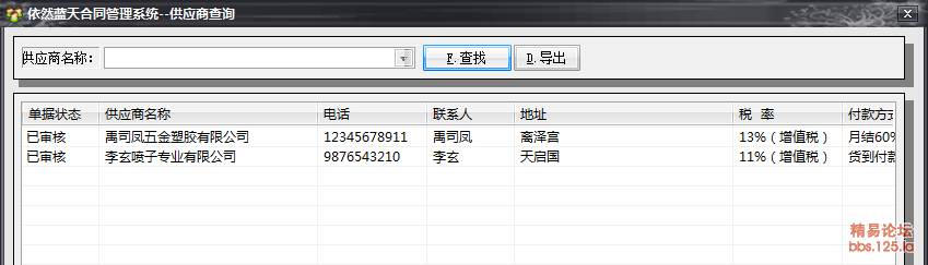 合同查询界面模仿了 金蝶K3,用过金蝶的人比较熟悉。