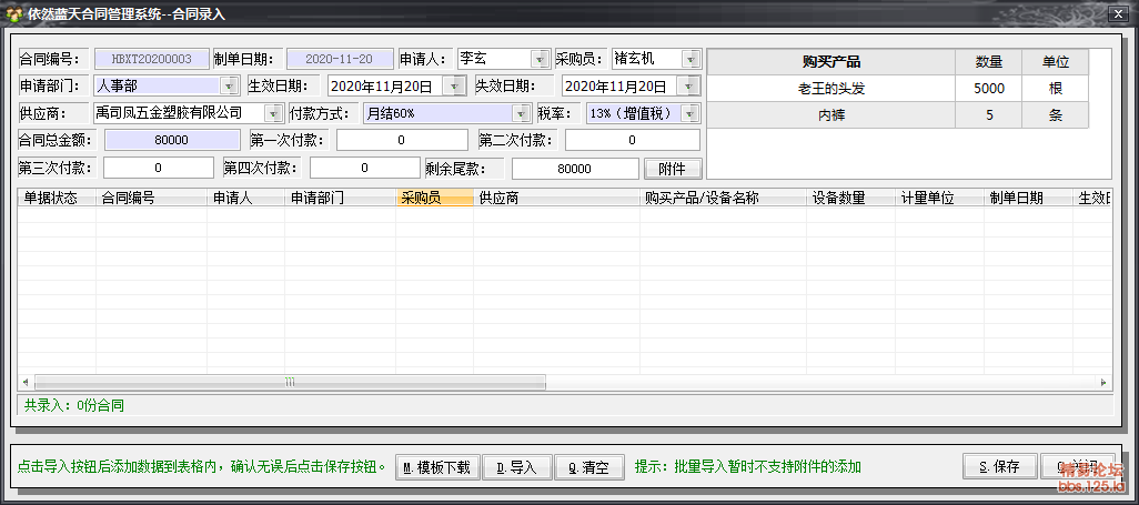 各位大佬,我又来了,这个是给公司搞得一个合同管理系统,我看了下论坛好像没有相关的程序开源,写的比较粗糙,以后也不更新这个东西了。所以我就开源一个。