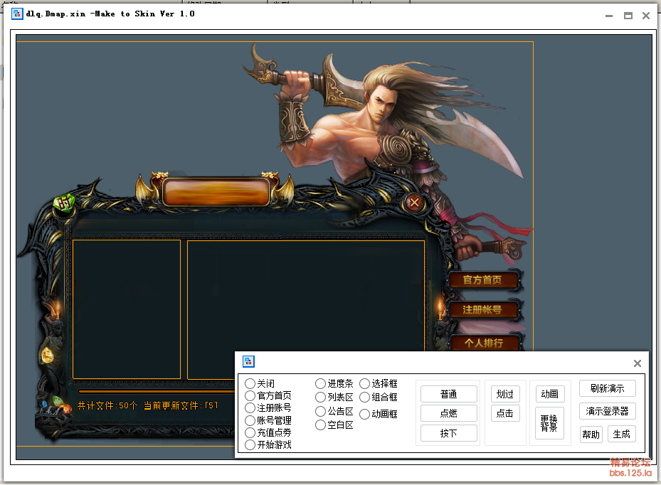 以前是在线用户注册充值生成皮肤和登录器的,不过现在我找不到我那套网站管理系统了。。。 就这样用吧。